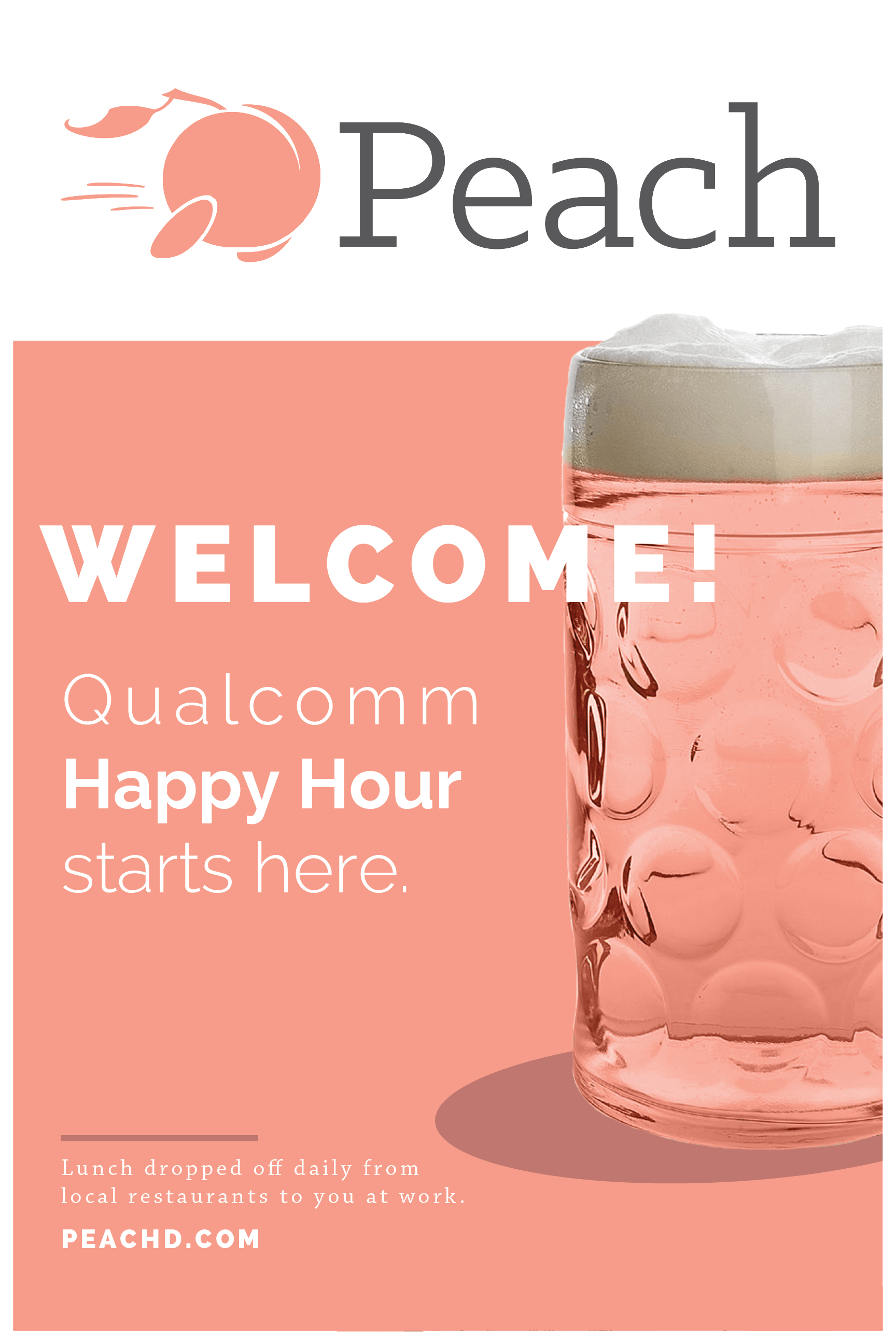 I designed a landing page that users interested in joining Peach at their company could access. The previous landing page was generic and offered little context about what food was being delivered to the company, a critical selling point.